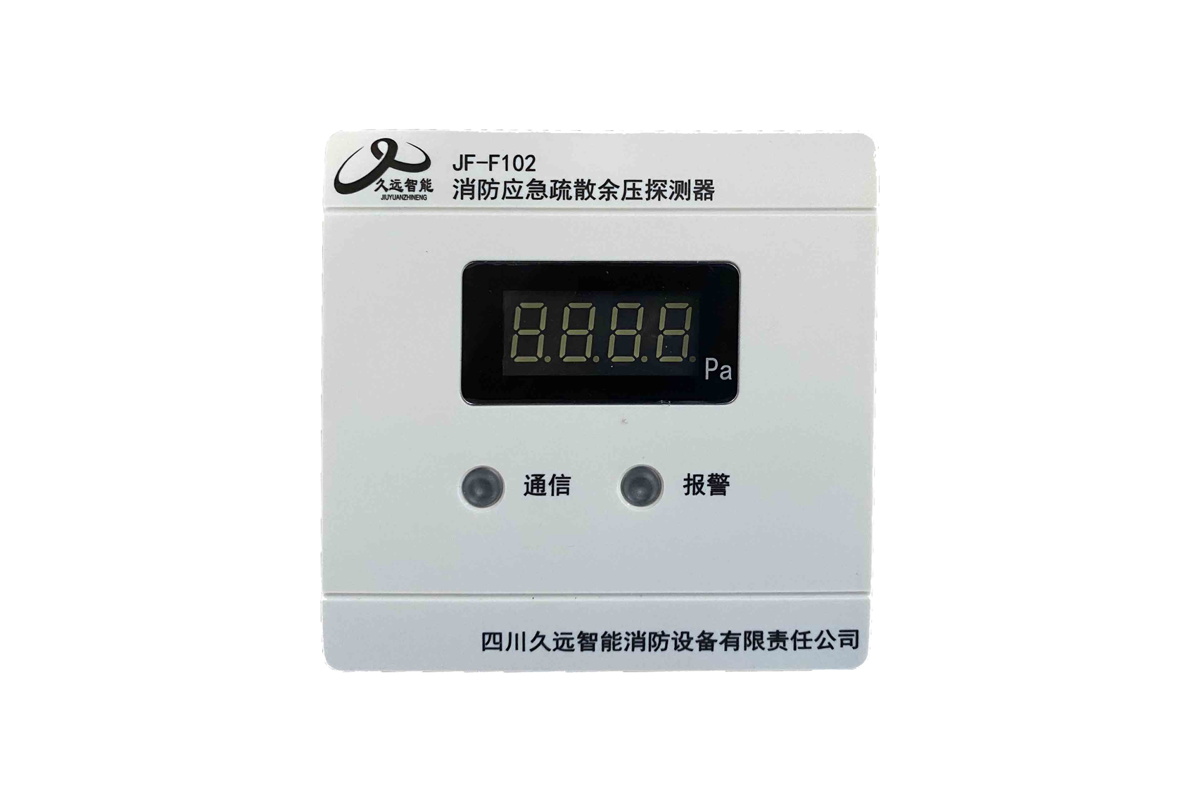 JF-F101/F102 型消防應(yīng)急疏散余壓探測器采用數(shù)字傳感技術(shù),外觀小巧,靈敏度高, 通過微壓差傳感器實時監(jiān)測防煙樓梯或前室與消防通道之間的余壓值,當(dāng)上述區(qū)域的余壓 值超出設(shè)定值時,在進(jìn)行光報警的同時(JF-F102 型消防應(yīng)急疏散余壓探測器具有顯示余壓 值的功能),通過無極性二總線將報警信號傳送到消防應(yīng)急疏散余壓控制器,消防應(yīng)急疏 散余壓控制器顯示超標(biāo)壓差值,并根據(jù)超壓值的不同進(jìn)行邏輯計算并聯(lián)動控制所連接的消 防應(yīng)急疏散電動泄壓風(fēng)閥執(zhí)行器進(jìn)行動作,開啟適當(dāng)?shù)慕嵌?,調(diào)整報警區(qū)域的正壓送風(fēng)量, 保證余壓值回歸到正常范圍內(nèi)。消防應(yīng)急疏散余壓探測器宜安裝在前室與消防通道間的墻 壁上(高壓側(cè)),距頂棚 0.5 米處。JF-F101/JF-F102 消防應(yīng)急疏散余壓探測器可以通過編碼 器對其進(jìn)行地址設(shè)置,地址范圍 1~63。